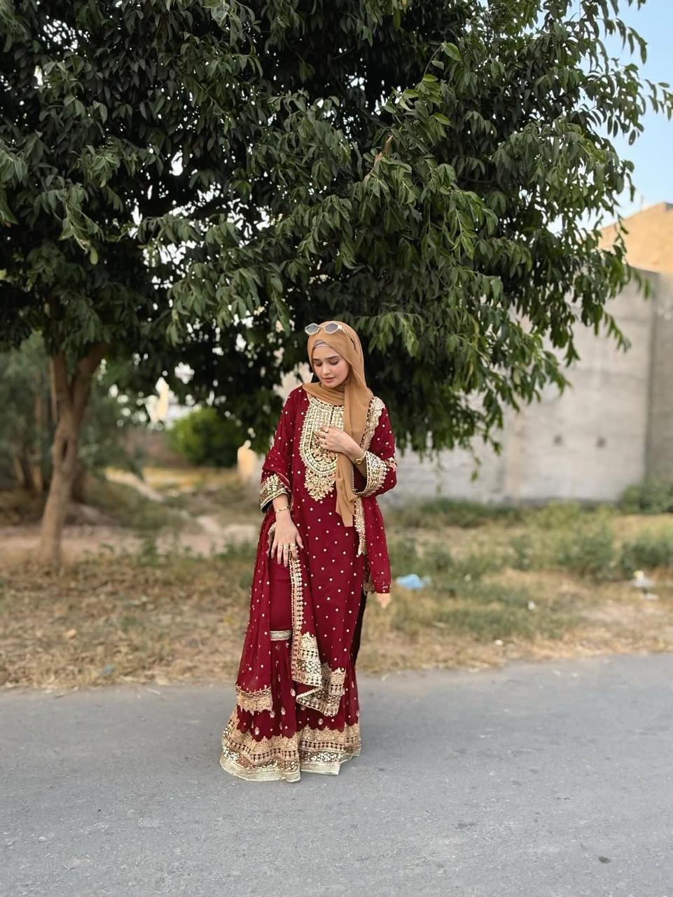 Sequins Embroidered Gharrara Chiffon