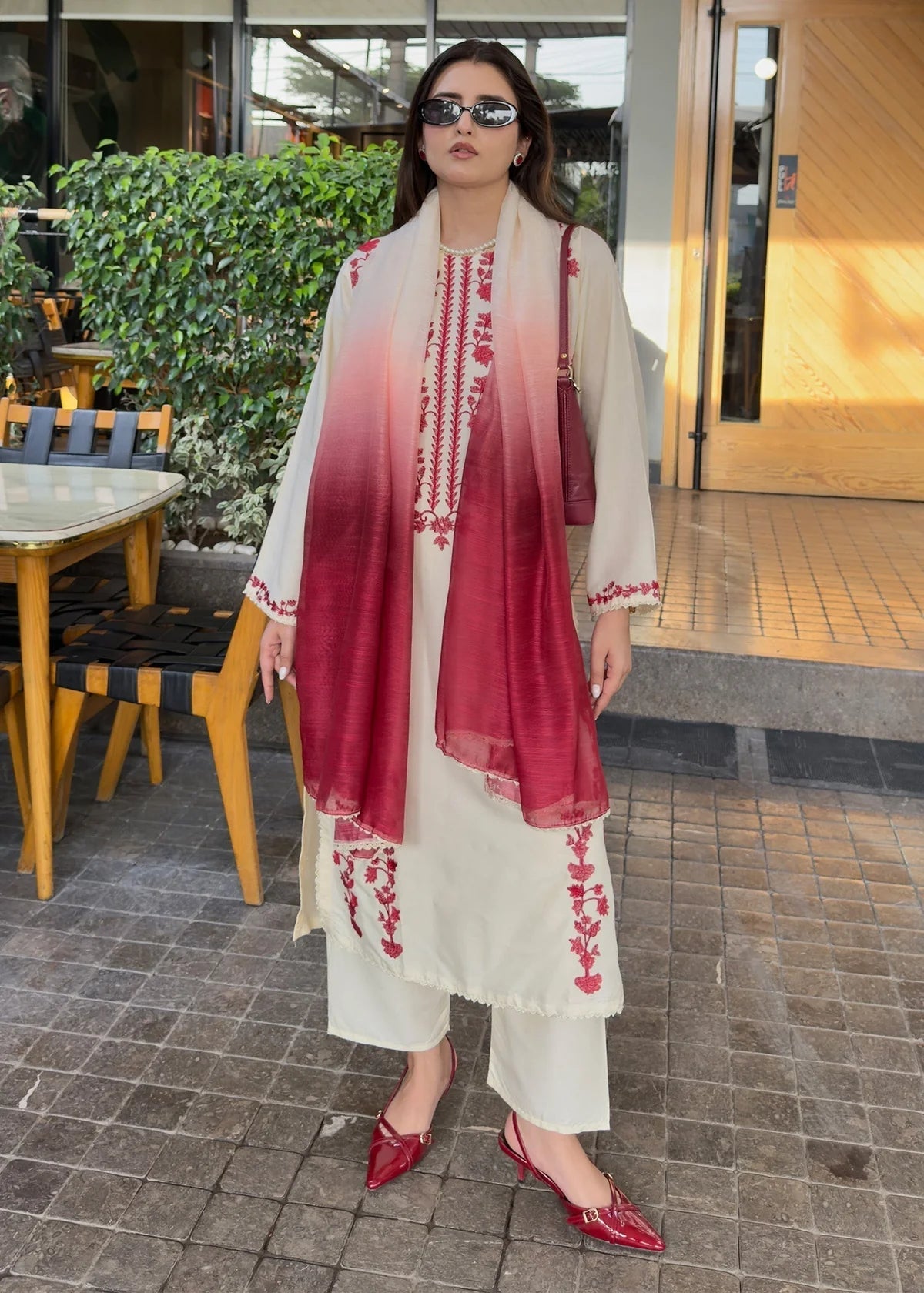 EMBROIDERED 3PC DHANAK DRESS WITH PRINTED DHANAK SHAWL-DAS/5141